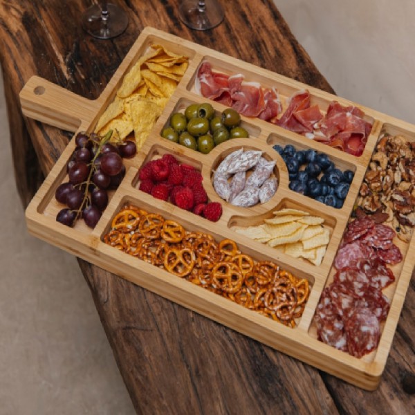Borrelplank van bamboe met vakjes