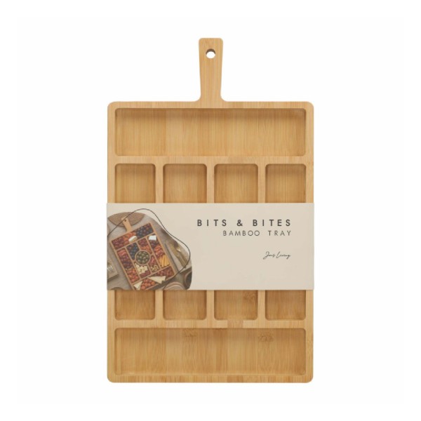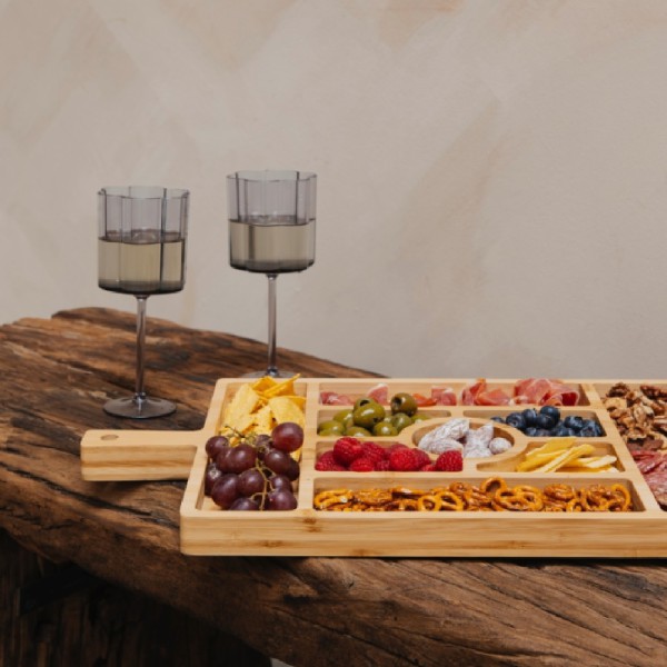 Deze borrelplank van bamboe is ideaal voor tapas, snacks en andere kleine hapjes. Dankzij de handige vakjes presenteer je alles netjes en overzichtelijk. Hoe handig is het als je kaas, nootjes en olijven gewoon op één stijlvolle plank kunt serveren?