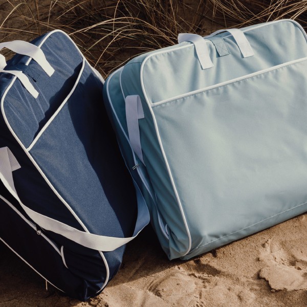 Hij is licht van gewicht, inklapbaar Ên makkelijk mee te nemen dankzij de schouderband en handvatten. En o ja, spullen stop je handig weg in de grote achterzak of de verborgen ritsvak. Gemaakt van gerecycled polyester, dus ook nog een duurzame keuze. Ideaal voor een stranddag, festival of picknick in het park!