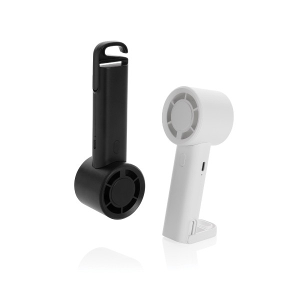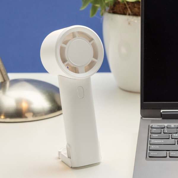 Deze draagbare ventilator is te bedrukken met jouw logo of boodschap. Ideaal als bedrukt relatiegeschenk, promotioneel artikel of zomerse giveaway voor medewerkers en relaties.