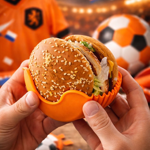 Hamburgers zijn top. Tot ze uit elkaar vallen terwijl je eet. Met deze siliconen houder blijft alles netjes bij elkaar, broodje, burger, saus en al. En valt er toch iets naast dan vangt het bakje het op!
