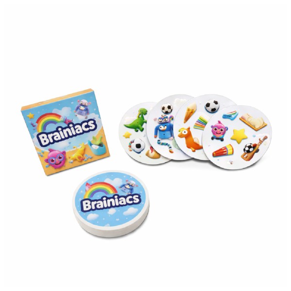 Dit spel werkt zoals Dobble: op elke kaart staat steeds รฉรฉn symbool dat overeenkomt met een andere kaart. Jij kunt je eigen symbolen bij ons aanleveren en wij maken er jouw bedrijfsspel van. Hoe leuk is het als jouw logo, iconen of campagnebeelden steeds terugkomen tijdens het spelen? De kaarten kunnen full colour worden bedrukt, net zoals het doosje.