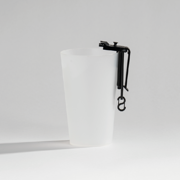 De clip is geschikt voor harde en zachte bekers én PET-flesjes. Dankzij het handige ontwerp haal je je drankje er met één hand uit.