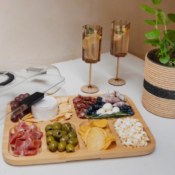 Iedereen kent ze van TikTok en Instagram: snackboxen en borrelplankjes met vakjes. En eerlijk is eerlijk, hoe leuk is het als alles zo netjes bij elkaar ligt? Deze bamboe serveerplank met vakverdeling maakt van elke borrel meteen iets bijzonders.