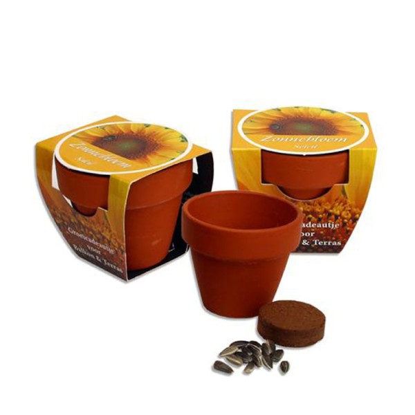 In het potje zit een potgrondtablet en een zakje zaden naar keuze. Denk aan zonnebloemen, basilicum of klavertjesvier. Super leuk om weg te geven op beurzen, als kleinigheidje voor collega's of bijvoorbeeld als welkomstcadeautje voor nieuwe bewoners in zorgcentra of bij woningcorporaties.