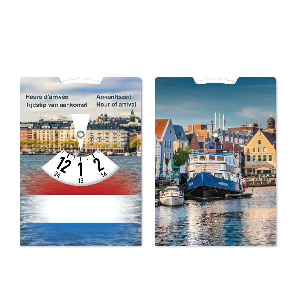 Laat de parkeerschijf bedrukken met jouw logo, boodschap of beeld. Leuk om uit te delen op een beurs, mee te sturen in een mailing of gewoon als originele give-away.